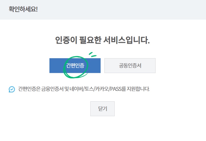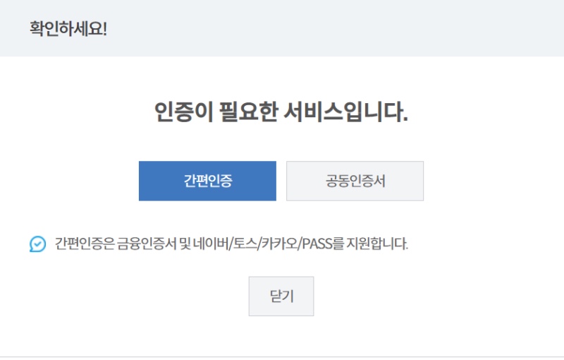 요새는 공동인증서가 없어도 간편인증으로 가능해서 좋은 것 같습니다.